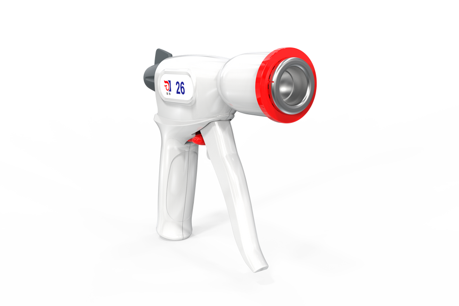 - Dévisser la bague grise arrière du CircCurrer™ afin de libérer la cloche à gland et jeter l’anneau rouge protégeant le cylindre.