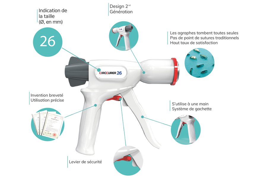 - Le CirCurer™ est constitué d’un scalpel cylindrique et d’une agrafeuse mécanique circulaire.